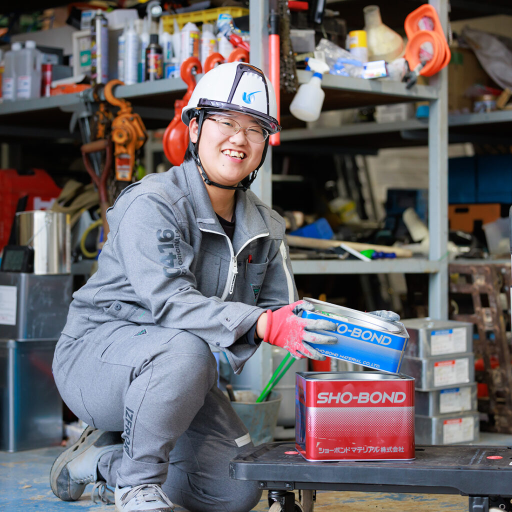 高校時の就職活動で弊社に一目ぼれ。専門知識は皆無でしたが、何でも挑戦できる職場なのでできることも増えてきました。今は現場を撮影して報告書をまとめる業務を担当しています。工事同様、自分も確実に成長しているのを実感しています。