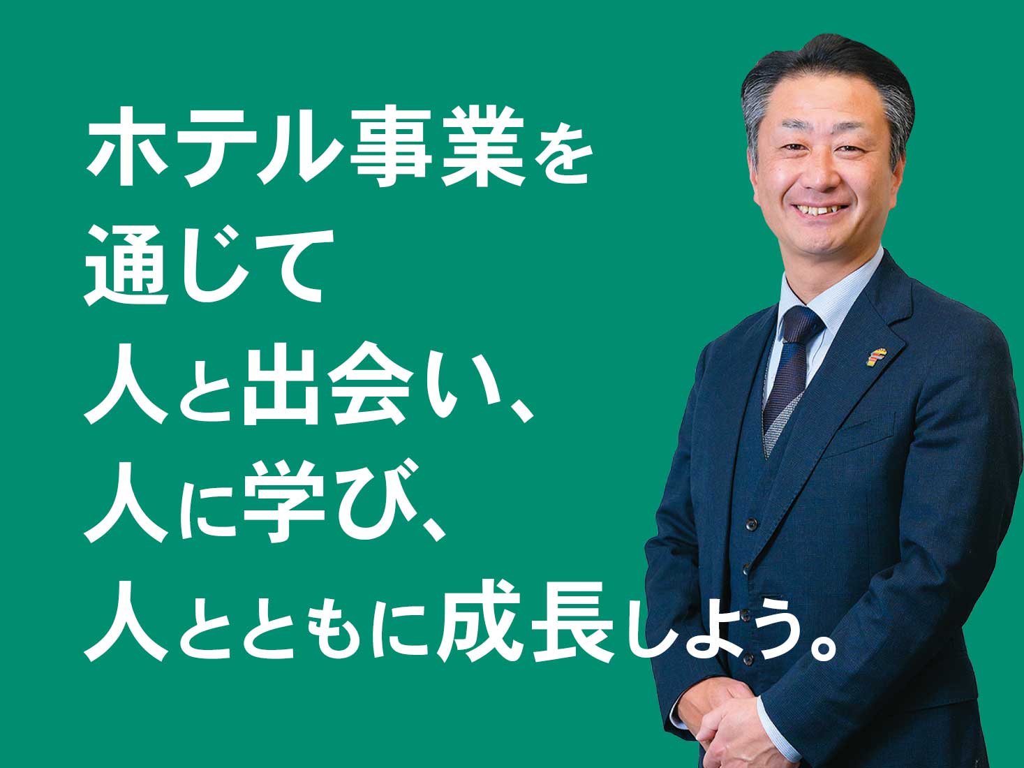 私がお客様第一主義の理念を実践するために大切にしているのが「人が成長できる企業」であることです。お客様との一期一会の出会いに学び、社員がお互いを認め合い、助け合いながらともに成長することが、お客様や社会に貢献していく力になると考えています。お客様に「また来たい」と思っていただけるホテルを私たちと一緒につくりませんか? 人と関わることが好きな方、誰かのために一生懸命になれる方を心からお待ちしています。