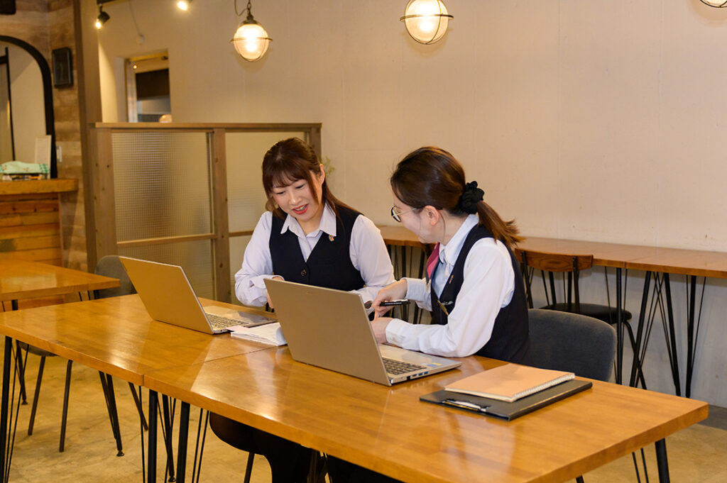 OJT研修に加え、外部研修への参加や、接客スキル向上のための学習機会、資格取得へのサポートなど、自分らしく成長できる環境がしっかりと整っている。