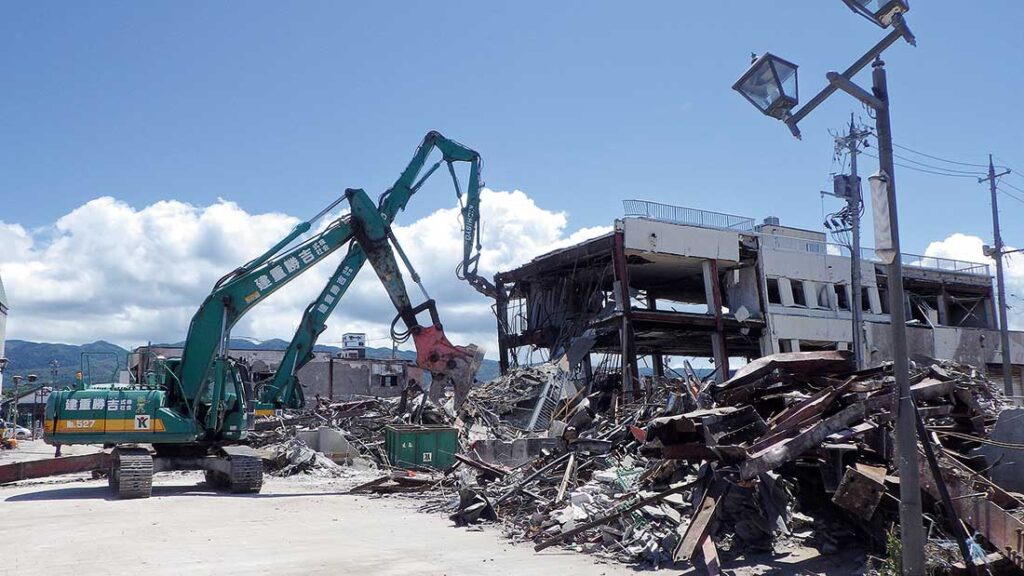 “環境に優しい信頼される企業”を目指し、構造物の施工計画〜解体〜運搬〜中間処理〜最終処分まで一貫体制で施工。また、専門職としての社員の育成にも力を入れている。