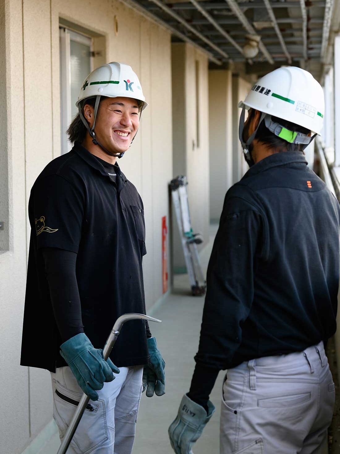 解体工事業は人の力と機動力が欠かせない仕事。それだけに当社ではベテランから若手への技術継承を業務上の能力として評価し、どの世代も活躍できる環境づくりに取り組んでいます。実際に高卒で入社し、仕事のキャリアを積み重ねながら結婚し家を建てて……と公私とも充実させている社員が多いので、先輩を参考に将来設計を立てやすいのも当社ならではの特長だと感じています。