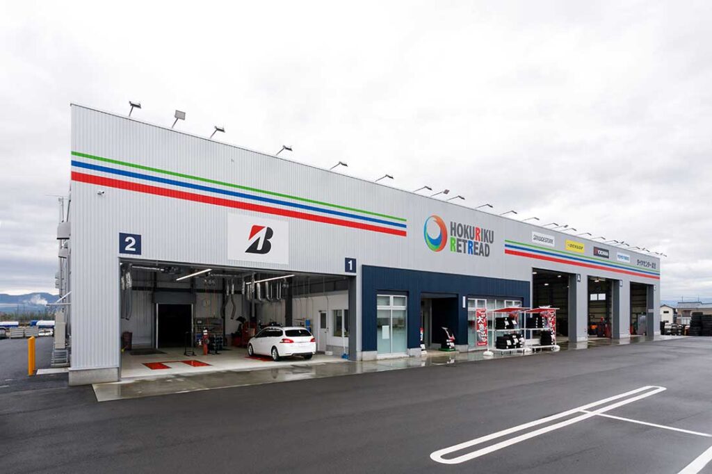 走行で摩耗したタイヤを再生させたり(リトレッドタイヤ)、再生できないタイヤを燃料として利用するリサイクル事業を行なう。タイヤ販売店は福井県内で7店舗を展開中。
